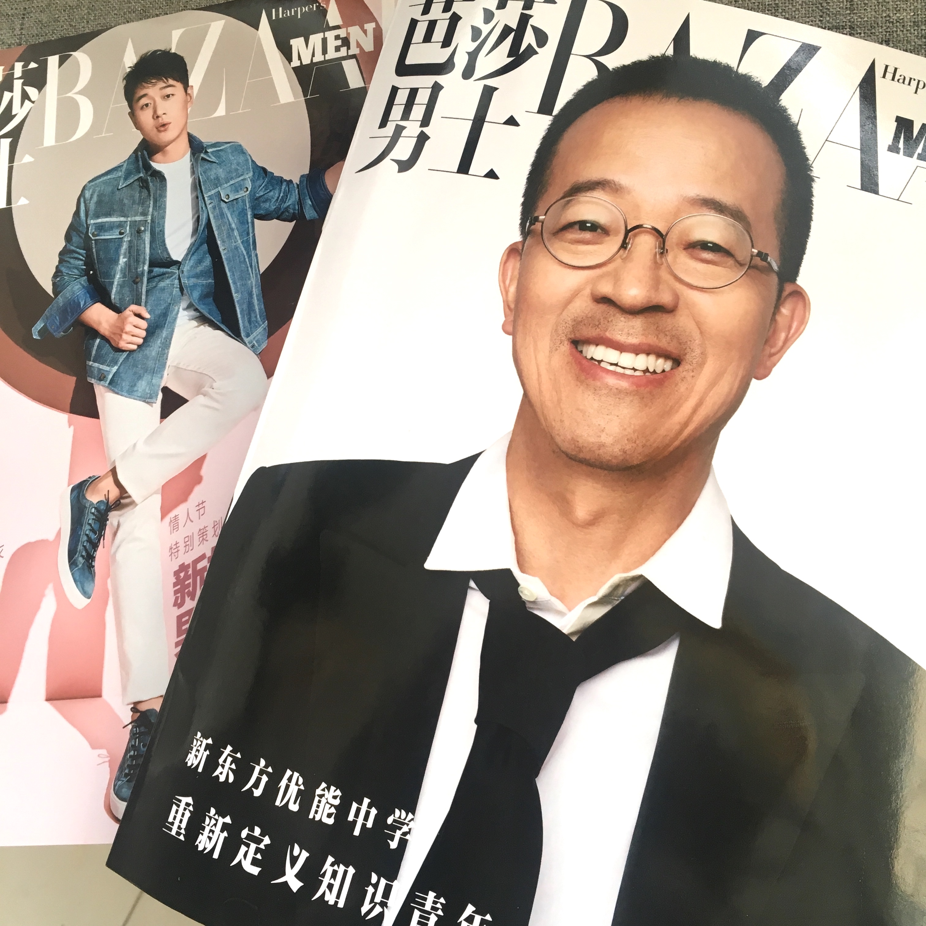 2月刊的《芭莎男士》已經(jīng)擺上了書攤,一張熟悉的面孔在其副刊封面上——俞敏洪,黑白色系,西裝革履,還帶著簡單的造型與妝發(fā)。 “新東方優(yōu)能中學(xué)重新定義知識(shí)青年”——是封面的主題。