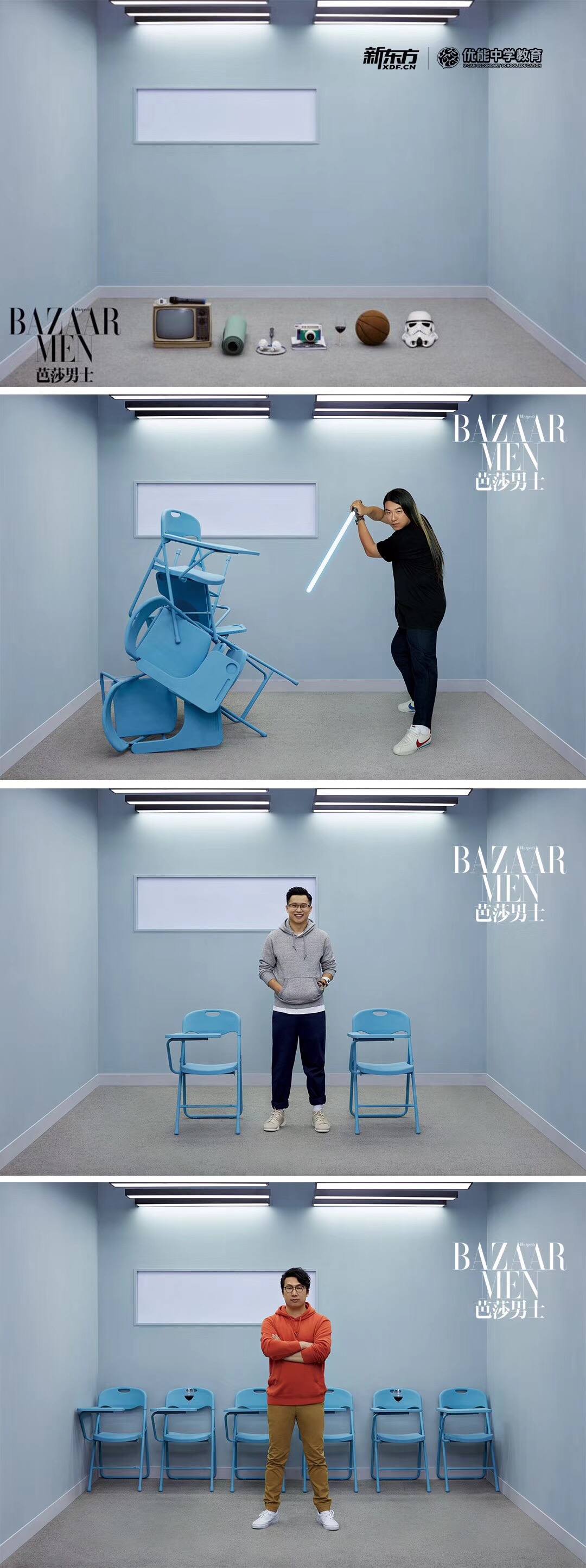 而與俞敏洪一起參與到這次雜志拍攝的,還有十位新東方優(yōu)能中學(xué)老師。這次《芭莎男士》給他們貼上的也不是“名師”的標(biāo)簽,而是“新知識(shí)青年”。