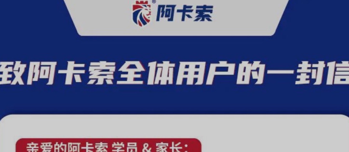 此前,阿卡索也通過官方公眾號(hào)發(fā)布了通知,提到:“阿卡索會(huì)積極響應(yīng)國家號(hào)召,繼續(xù)對(duì)已購買課程學(xué)員提供正常、優(yōu)質(zhì)的教學(xué)服務(wù),保障所有學(xué)員的權(quán)利與義務(wù)。消費(fèi)者權(quán)益受國家法律保障,我司會(huì)保障對(duì)消費(fèi)者的合理權(quán)益。”
