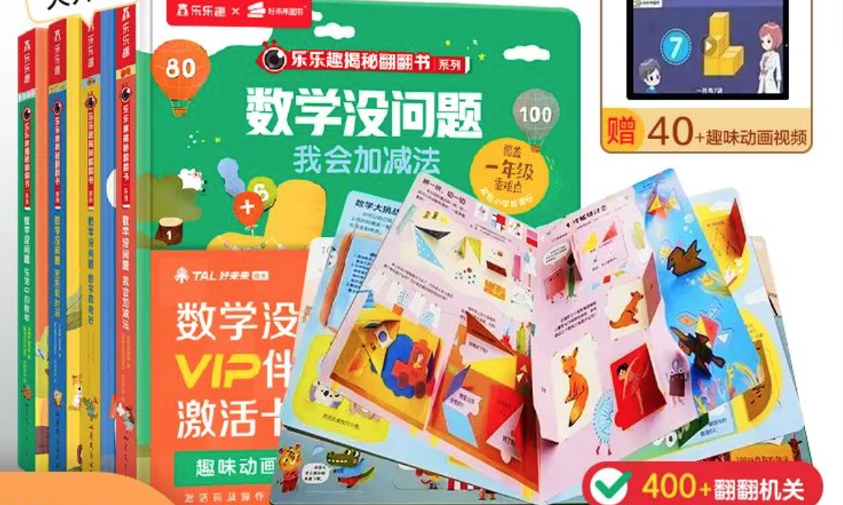 根據(jù)介紹,《數(shù)學(xué)沒問題》整套書全4冊,包括《數(shù)字真奇妙》《我會加減法》《圖形和時間》《生活中的數(shù)學(xué)》,覆蓋一年級數(shù)學(xué)5大領(lǐng)域重難點,內(nèi)附好未來學(xué)而思VIP伴學(xué)視頻激活卡,超40多個趣味伴學(xué)動畫,是翻翻書(即采用立體設(shè)計,每一頁都可以讓孩子去探索發(fā)現(xiàn))的形式,生動有趣,適合3-7歲幼兒快樂啟蒙數(shù)學(xué)。