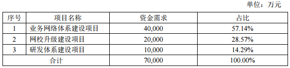 公告稱,本次股票發(fā)行募集資金將用于業(yè)務(wù)網(wǎng)絡(luò)體系建設(shè)項(xiàng)目、網(wǎng)校升級(jí)建設(shè)項(xiàng)目和研發(fā)體系建設(shè)項(xiàng)目。