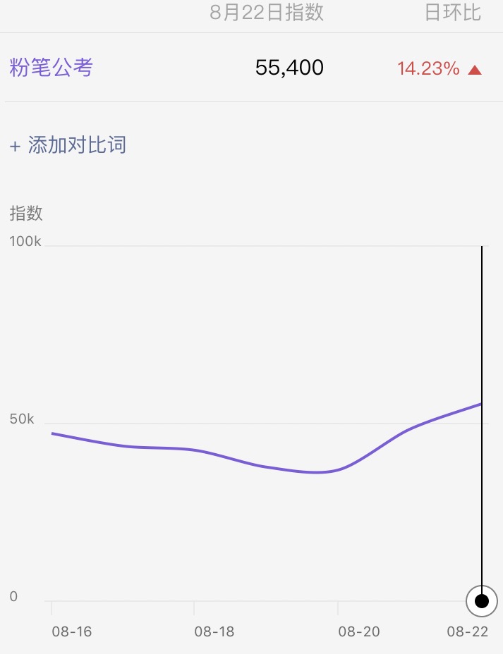 截止到23日7點(diǎn),粉筆公考的百度指數(shù)和微信指數(shù)均有所上升。