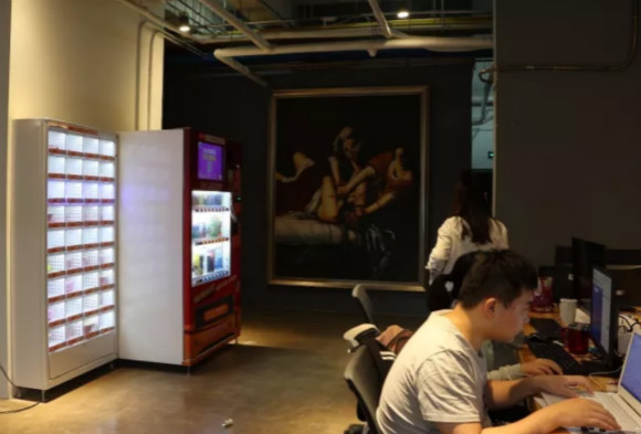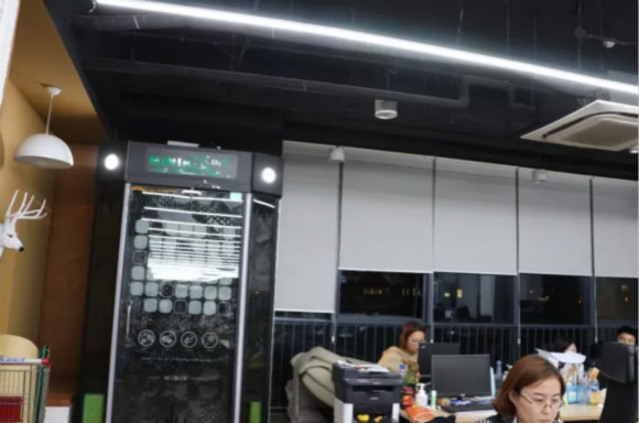 尚德的休息區(qū)遍布在公司各處,可以聊天洽談的會議區(qū)、各式自動販賣機。