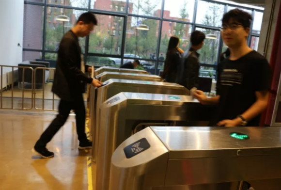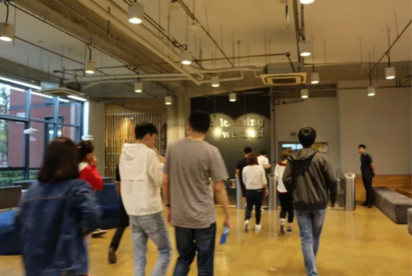 打卡進樓,員工往來奔走。據(jù)介紹,尚德機構(gòu)員工的工作時間是有彈性的,有多種不同作息時間。