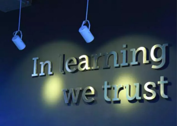 進入尚德機構(gòu)的工作區(qū)域,是一面“學習是一種信仰”的文化墻。