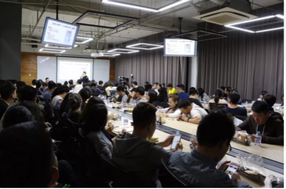 此時,在大會議室“居魯士”里,即將開始一場培訓會,進入會場前的員工們在進行登記。據(jù)介紹,像這種培訓活動每周會不定時地舉辦多場,員工們都會可以在公司系統(tǒng)中報名參加。