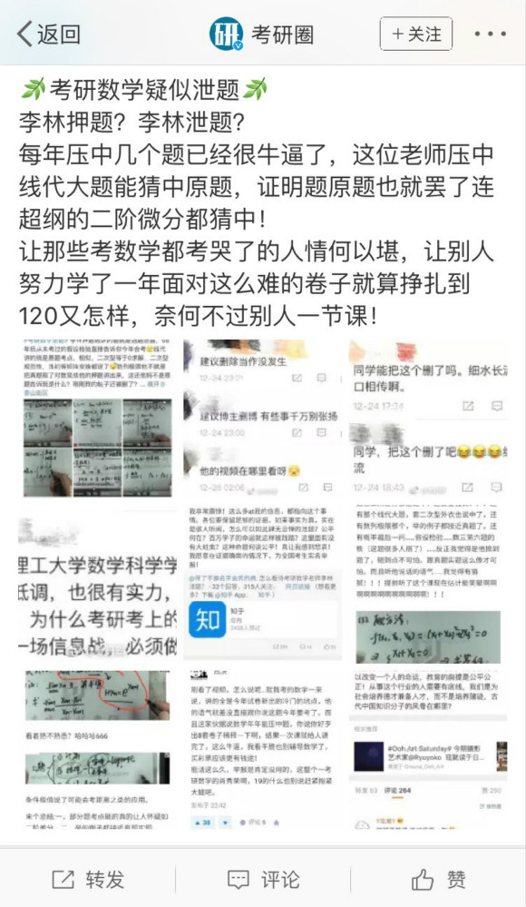 昨日,微博爆出2018考研數(shù)學(xué)科目疑似出現(xiàn)“泄題”事件。