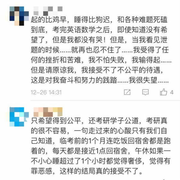 “除事件本身存在疑點(diǎn),或許事件發(fā)酵的根源是考生的哀怨,”某考研培訓(xùn)從業(yè)者說道:“今年的考研數(shù)學(xué)堪稱史上最難,有學(xué)生稱’自己用12個(gè)月復(fù)習(xí),卻進(jìn)行了一場(chǎng)裸考’,足可見其難度。”