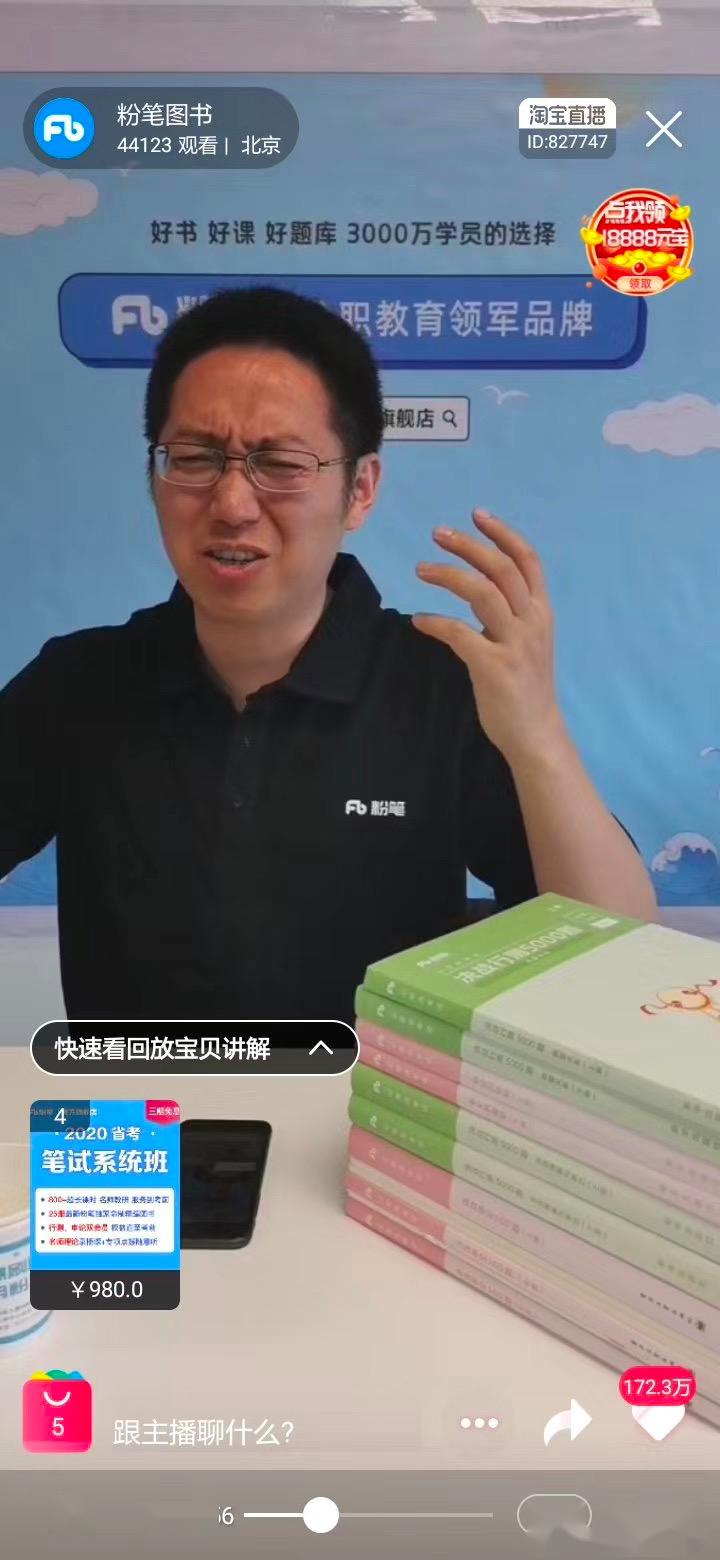 在張小龍樸素的直播認(rèn)知里,直播間里一切可賣。不僅僅是粉筆圖書以及為天貓店鋪引流,在最后的十分鐘,張小龍甚至為粉筆各系列課程產(chǎn)品乃至粉筆招聘都做了廣告??吹皆u(píng)論區(qū)有粉絲表示想要自己身上穿的粉筆Polo衫,張小龍差點(diǎn)兒“失控”當(dāng)場(chǎng)“脫”衣展示。