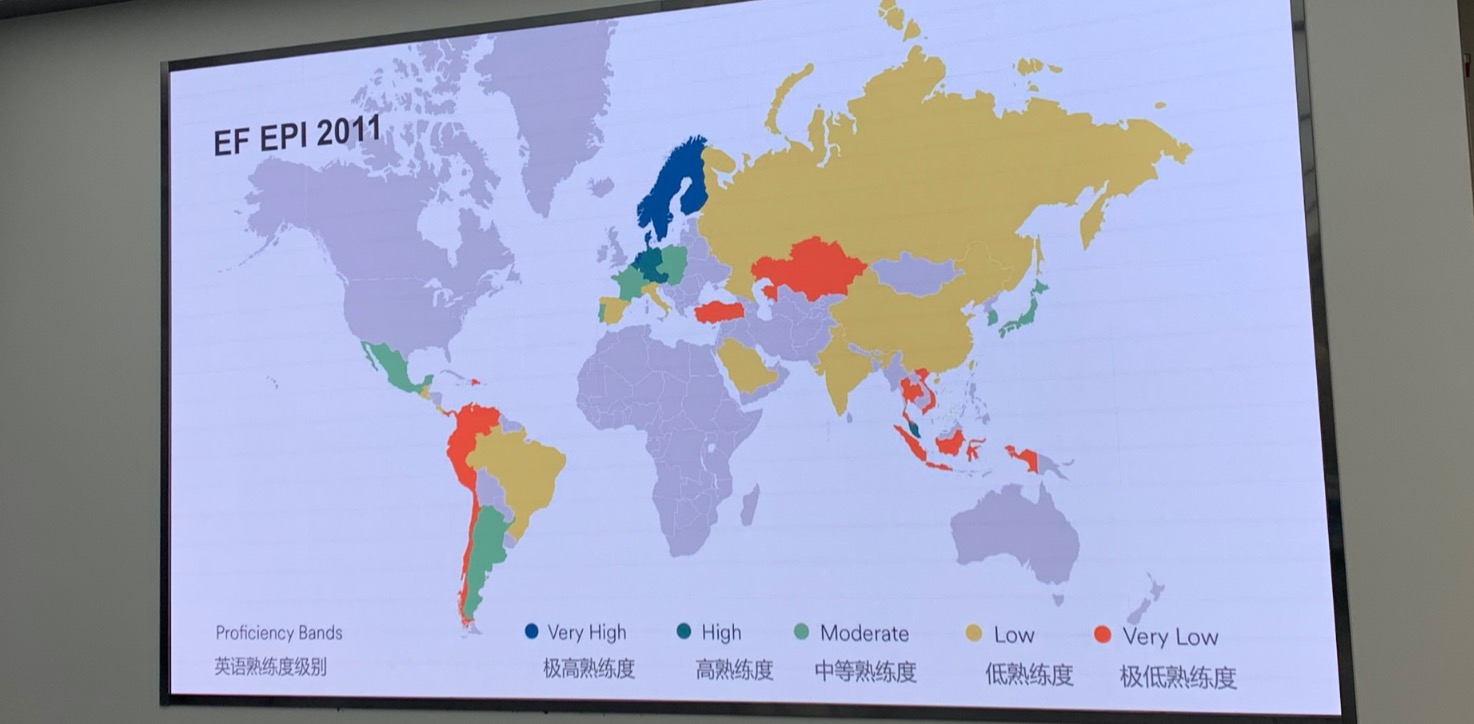 中國英語熟練度指標(biāo)得分為520分,全球排名第38位。
