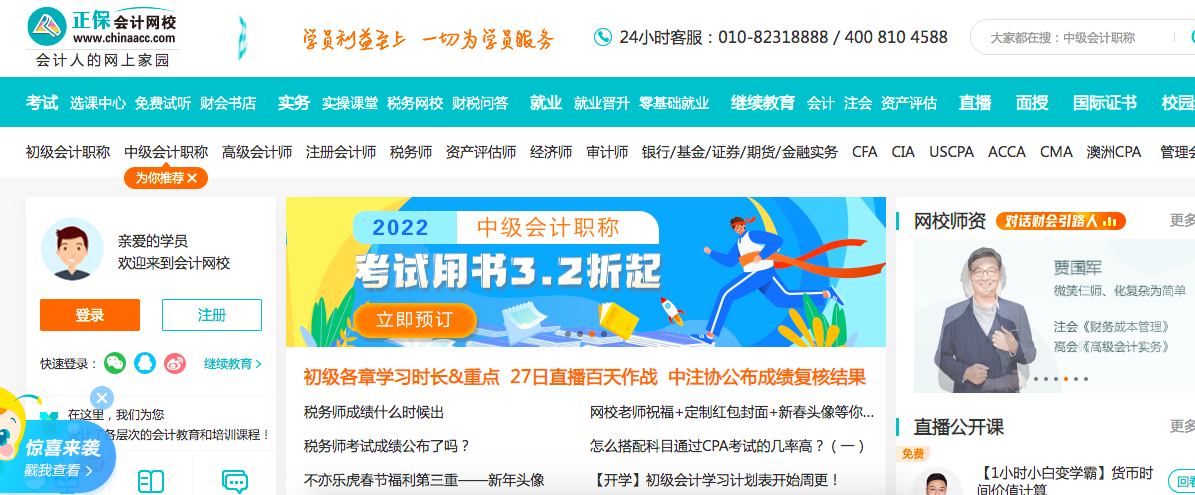 中華會計網(wǎng)校創(chuàng)辦于2000年,是會計培訓(xùn)領(lǐng)域最早的一批網(wǎng)校,是正保遠(yuǎn)程旗下子品牌,同時也是正保旗下貢獻最大營收的業(yè)務(wù)板塊。據(jù)其官網(wǎng)介紹,中華會計網(wǎng)校為會計從業(yè)人員與財經(jīng)類專業(yè)大學(xué)生提供考試培訓(xùn)、繼續(xù)教育、實務(wù)操作與就業(yè)服務(wù),為全國各類企業(yè)提供代理記賬服務(wù)與財稅咨詢服務(wù),已形成“考試培訓(xùn)、繼續(xù)教育、實務(wù)操作、財稅咨詢、就業(yè)服務(wù)”五位一體完善的終身教育體系。