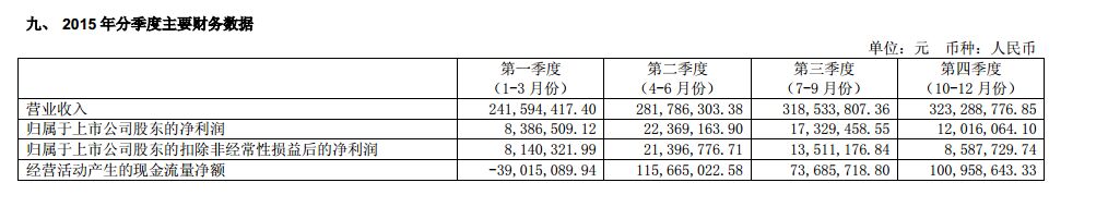 圖為新南洋2015年四個(gè)季度營收數(shù)據(jù)