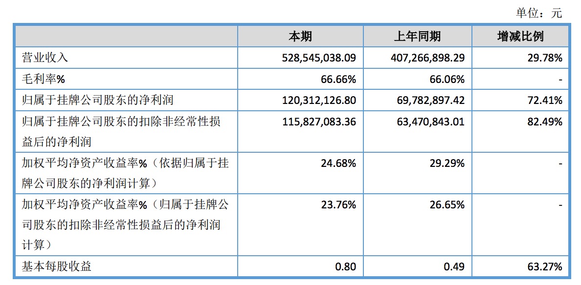 據(jù)報(bào)告顯示,2016年億童文教營(yíng)業(yè)收入為5.29億元,比上年同期的4.07億元增長(zhǎng)了29.78%;歸屬于掛牌公司股東的凈利潤(rùn)為1.20億元,比上年同期的6978.29萬(wàn)元增長(zhǎng)了72.41%;毛利率為66.66%,比上年同期的66.06%略有增長(zhǎng)。