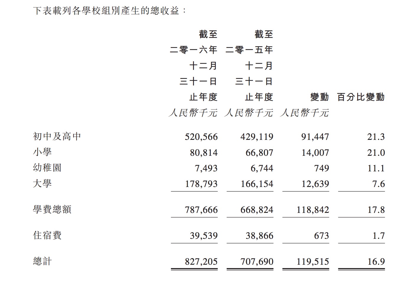 成實外教育稱,2016年利潤的增長主要是因為學(xué)生人數(shù)的增長和平均學(xué)費的提高,學(xué)費仍然為主要收入。