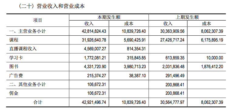 上圖為中大英才2015年、2016年各項(xiàng)業(yè)務(wù)收入