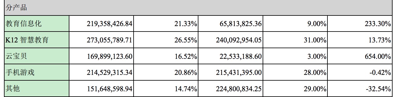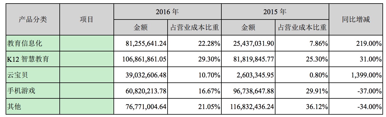 其中,K12智慧教育成本1.07億元,占比29.30%;教育信息化成本8125.56萬元,占比22.28%;云寶貝成本3903.26萬元,占比10.70%。