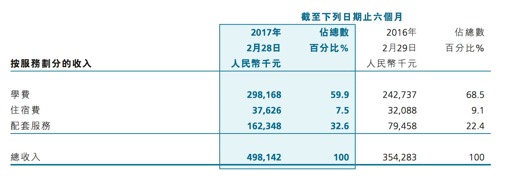 報(bào)告披露,收入來自向?qū)W生收取的學(xué)費(fèi)、住宿費(fèi)、配套服務(wù)費(fèi)及其他支援服務(wù)。報(bào)告期內(nèi),學(xué)費(fèi)收入為2.98億元,占比59.9%。學(xué)費(fèi)及住宿費(fèi)增加,主要由于整體招生人數(shù)增加及若干學(xué)校提高了學(xué)費(fèi)及住宿費(fèi)的費(fèi)率,從2015-2016學(xué)年起,新入學(xué)的學(xué)生將按增加的費(fèi)率繳納學(xué)費(fèi)及住宿費(fèi)。