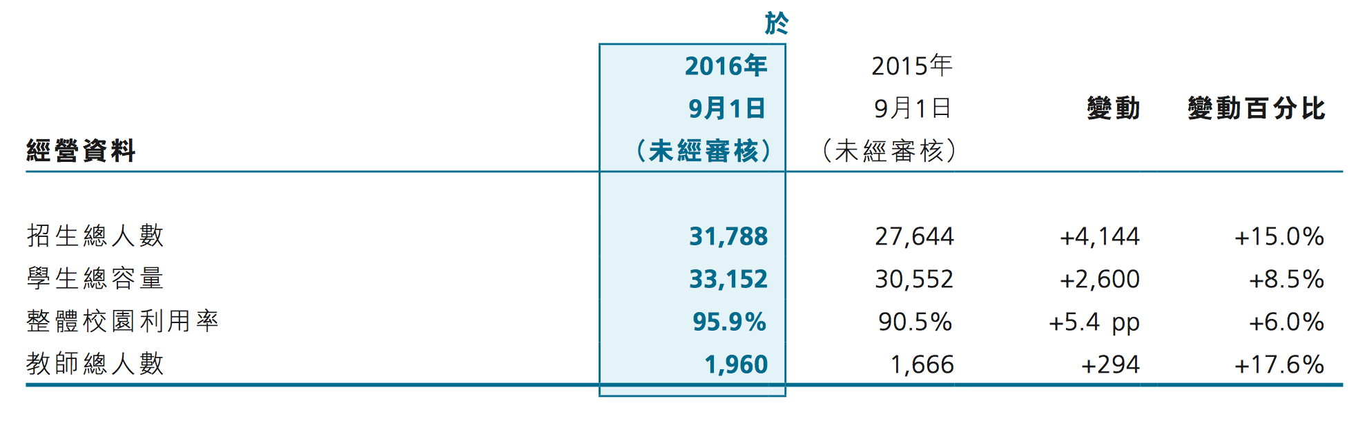 招生人數(shù)方面,2016年9月1日學(xué)生總?cè)藬?shù)31788人,較去年同期的27644人,增加了15%。