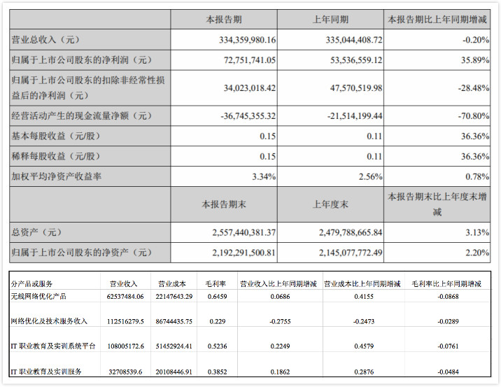 IT職業(yè)教育及實(shí)訓(xùn)服務(wù)營收3270.85萬元,同比增長18.62%,毛利率為38.52%。
