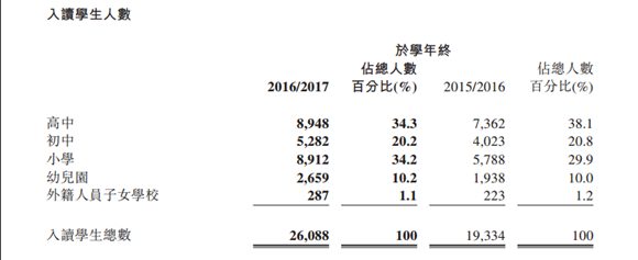 報告期內(nèi),楓葉教育2016/2017學年入讀學生人數(shù)為26088人,相比較2015/2016學年增加了6754人,增長34.9%,其中13.13%的增長來自于新開學校。