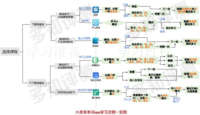 圖6 從幾款主流的詞匯APP的設(shè)計(jì)看,大部分對(duì)于學(xué)習(xí)單詞的目標(biāo)設(shè)計(jì)都比較簡(jiǎn)單。沒(méi)有太多認(rèn)知原理在里面。(Reference:多知網(wǎng) http://m.bowenjingyun.com/article/5423.html)
