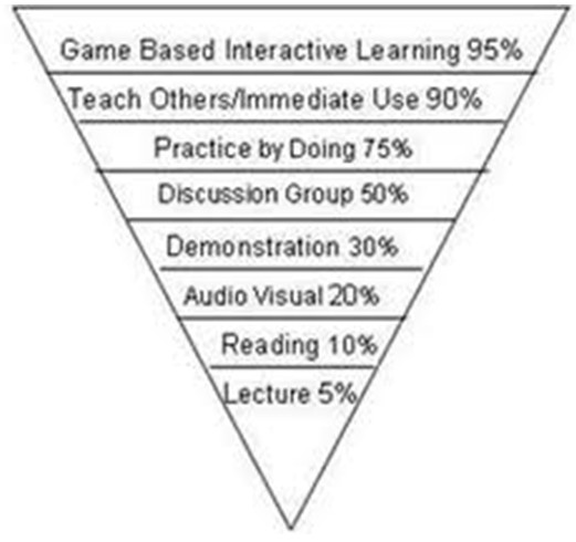 接下來是學(xué)習(xí)效率的問題。最好的是teaching others。今天的分享我做了大量準(zhǔn)備工作,因為我要暫時當(dāng)這一個小時的演講人。這是學(xué)習(xí)最好的方式。下面的Game based interactive learning,效率達到95%,可見游戲解決了motivation的問題。