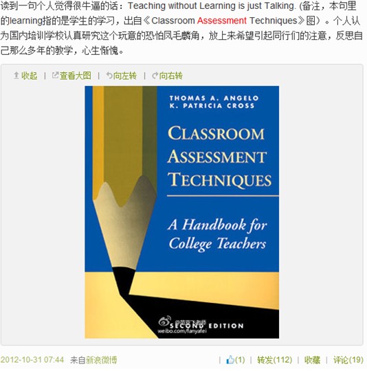 圖16:課堂評估技術(shù)的一本好書。這方面的書也很多,找到這一本,順藤摸瓜能找到一個系列。國內(nèi)這方面關(guān)注確實不多。