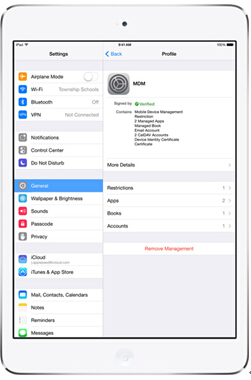 新的MDM功能幫助IT管理員在他們管理的iOS設(shè)備上做更多事情。他們可遠(yuǎn)程設(shè)定設(shè)備名稱,阻止用戶加入自己的限制要求或清除設(shè)備數(shù)據(jù)。新的查詢可讓管理員看到設(shè)備最后一次備份到iCloud的情況,以便知道執(zhí)行某些管理任務(wù)是否安全。設(shè)備上的MDM登記信息也被重新設(shè)計,用戶更容易理解政策和被管理的功能。