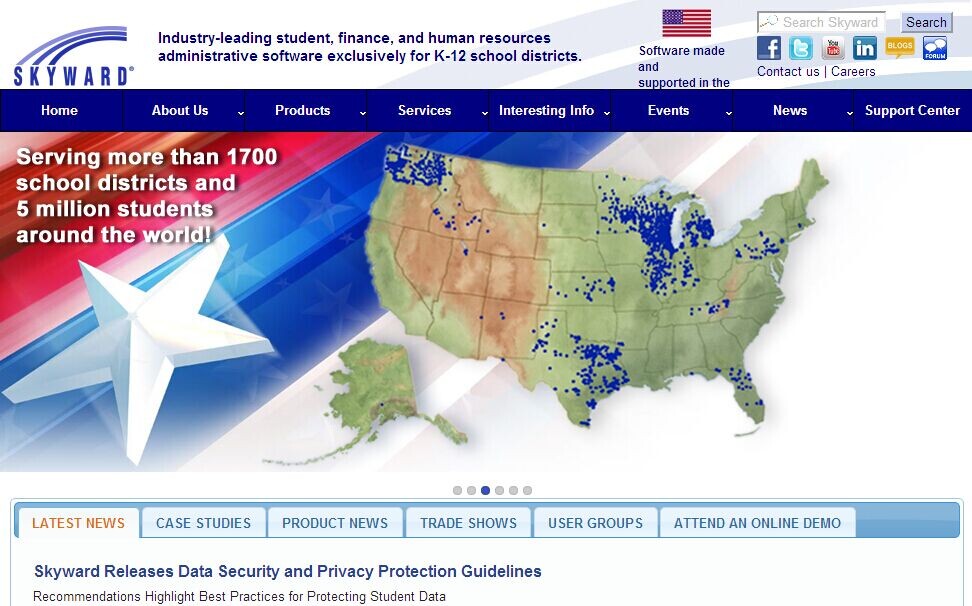 該公司用于監(jiān)控學(xué)生信息的學(xué)生管理組合軟件,最近在田納西得到廣泛普及。該軟件目前在全球用于管理著超過500萬學(xué)生。另外,該公司還為很多學(xué)校提供財(cái)務(wù)和人力資源管理軟件。由于90%的地方現(xiàn)在都使用電子數(shù)據(jù)存儲(chǔ)學(xué)生檔案,自稱有行業(yè)領(lǐng)先的數(shù)據(jù)保護(hù)最佳方案的Skyward,利用ISTE大會(huì)機(jī)會(huì)發(fā)布了新的適合所有學(xué)校的隱私和安全規(guī)則。