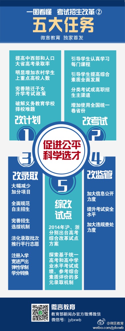 編者按:今天國務(wù)院發(fā)布關(guān)于深化考試招生制度改革的實(shí)施意見,新的高考改革方案出臺(tái),涉及改革考試科目設(shè)置,語、數(shù)、外三科維持原來分值不變等重要內(nèi)容。