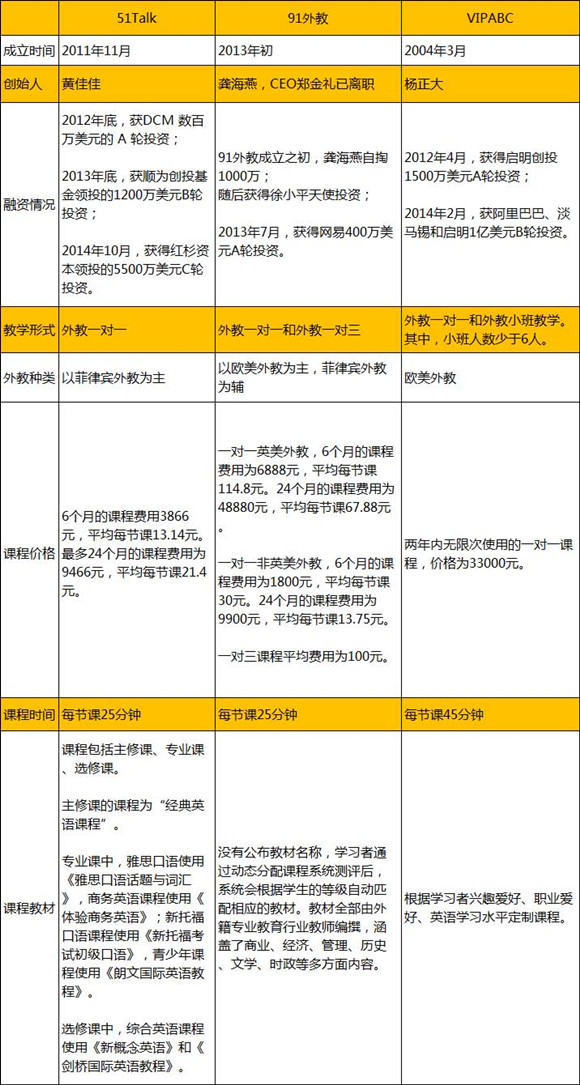 51Talk、91外教、VIPABC三家公司模式對(duì)比(多知網(wǎng)制圖)