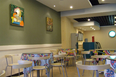 此外,“Language in Group”的教室還配有學(xué)生可以通過(guò)iPad與之連接的顯示屏,一整面墻刷成了白板,還有兩面墻貼有“高級(jí)酒店和飯店里的那種墻紙”。