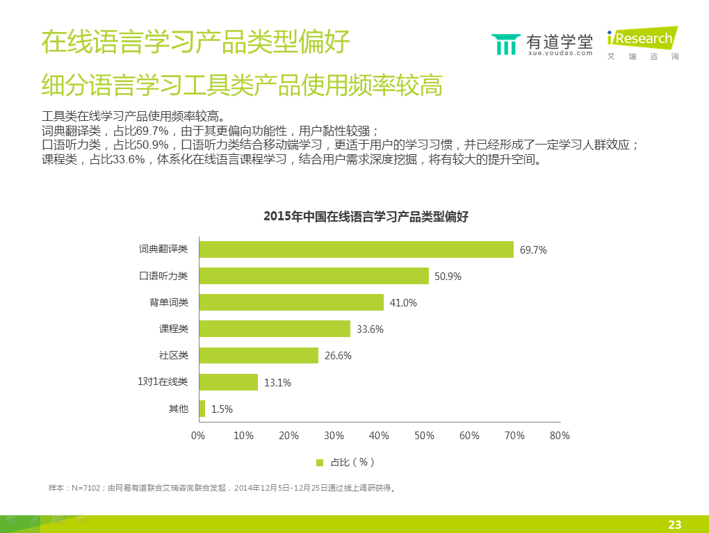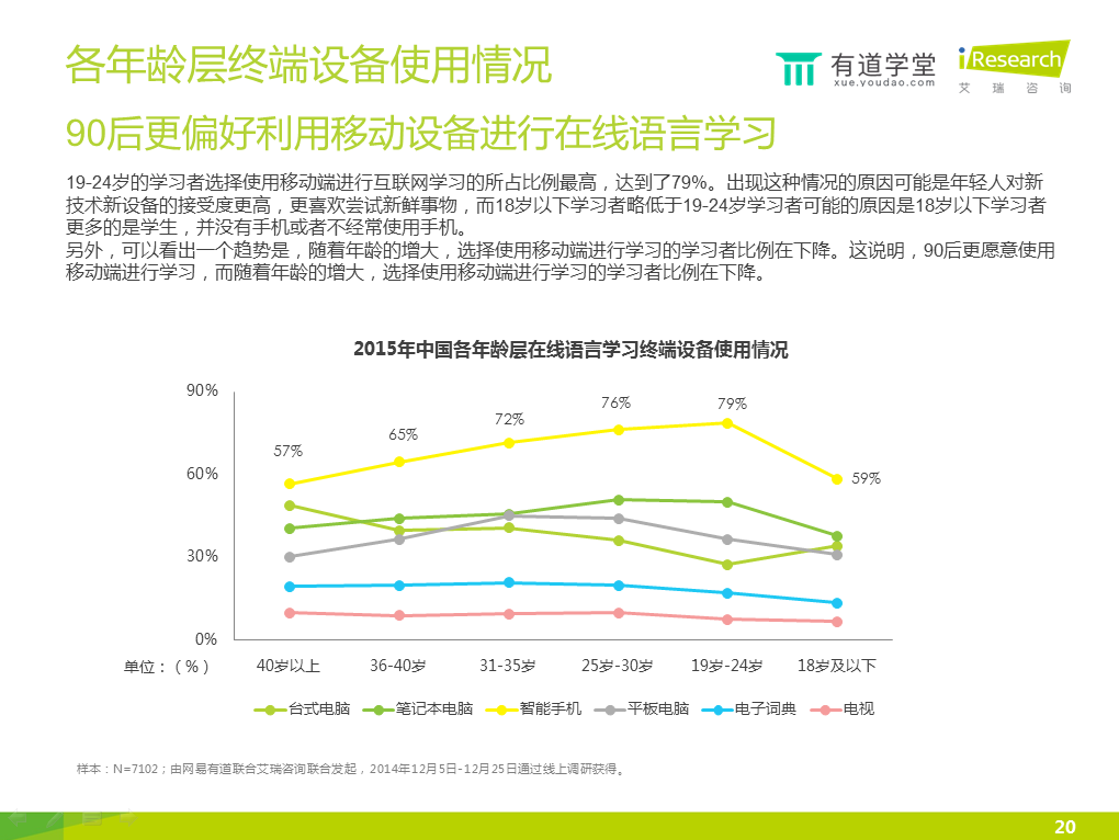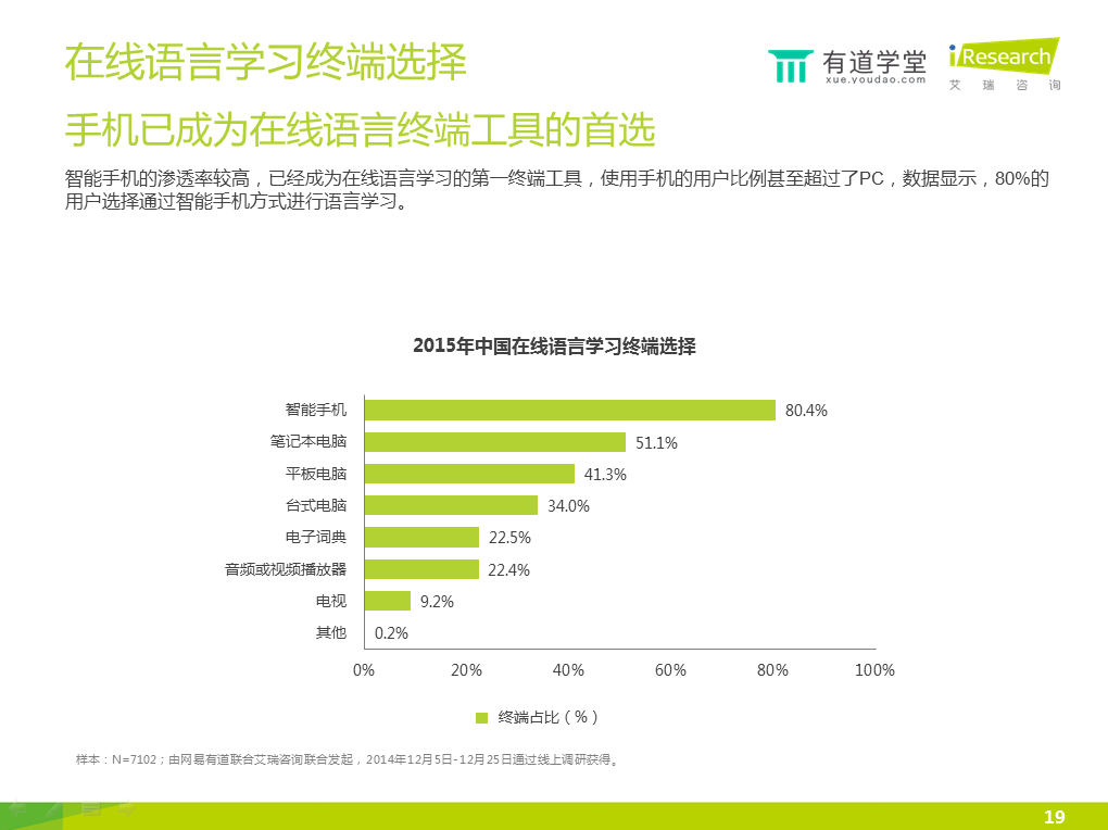 6)智能手機(jī)的滲透率較高,已經(jīng)成為在線語言學(xué)習(xí)的第一終端工具。