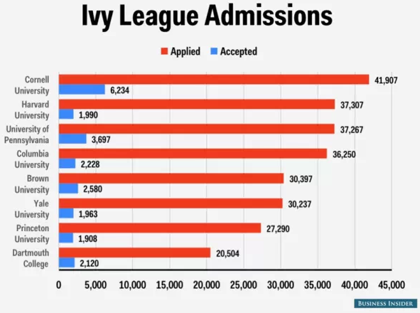編者按:4月1日,常青藤盟校陸續(xù)公布2015申請(qǐng)季申請(qǐng)結(jié)果,多所名校刷新了錄取率新低,例如哈佛從去年的5.9%大幅降低至5.33%。