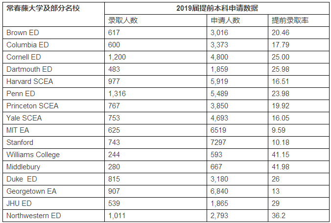 以下是常春藤盟校2015年本科提前錄取數(shù)據(jù):