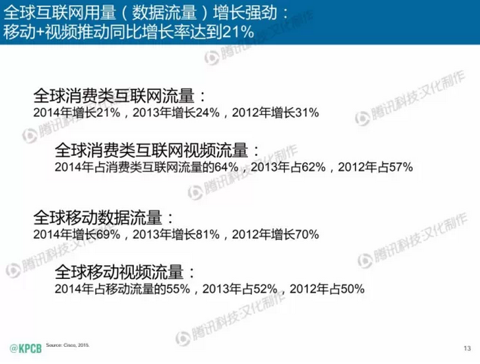 編者按:每年此時(shí),凱鵬華盈(KPCB)合伙人、享有“互聯(lián)網(wǎng)女皇”美譽(yù)的瑪麗·米克爾(Mary Meeker)都會(huì)公布一份互聯(lián)網(wǎng)趨勢(shì)報(bào)告。這份報(bào)告中包含了她對(duì)互聯(lián)網(wǎng)發(fā)展趨勢(shì)的完整剖析,覆蓋移動(dòng)設(shè)備到互聯(lián)網(wǎng)使用的方方面面。