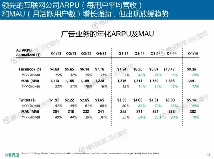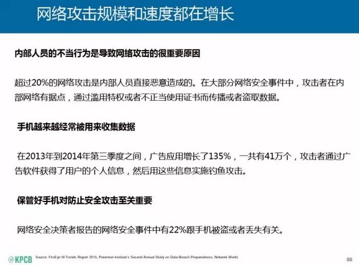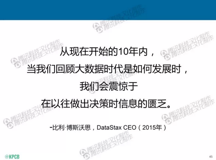 每年此時(shí),凱鵬華盈(KPCB)合伙人、享有“互聯(lián)網(wǎng)女皇”美譽(yù)的瑪麗·米克爾(Mary Meeker)都會(huì)公布一份互聯(lián)網(wǎng)趨勢(shì)報(bào)告。這份報(bào)告中包含了她對(duì)互聯(lián)網(wǎng)發(fā)展趨勢(shì)的完整剖析,覆蓋移動(dòng)設(shè)備到互聯(lián)網(wǎng)使用的方方面面。