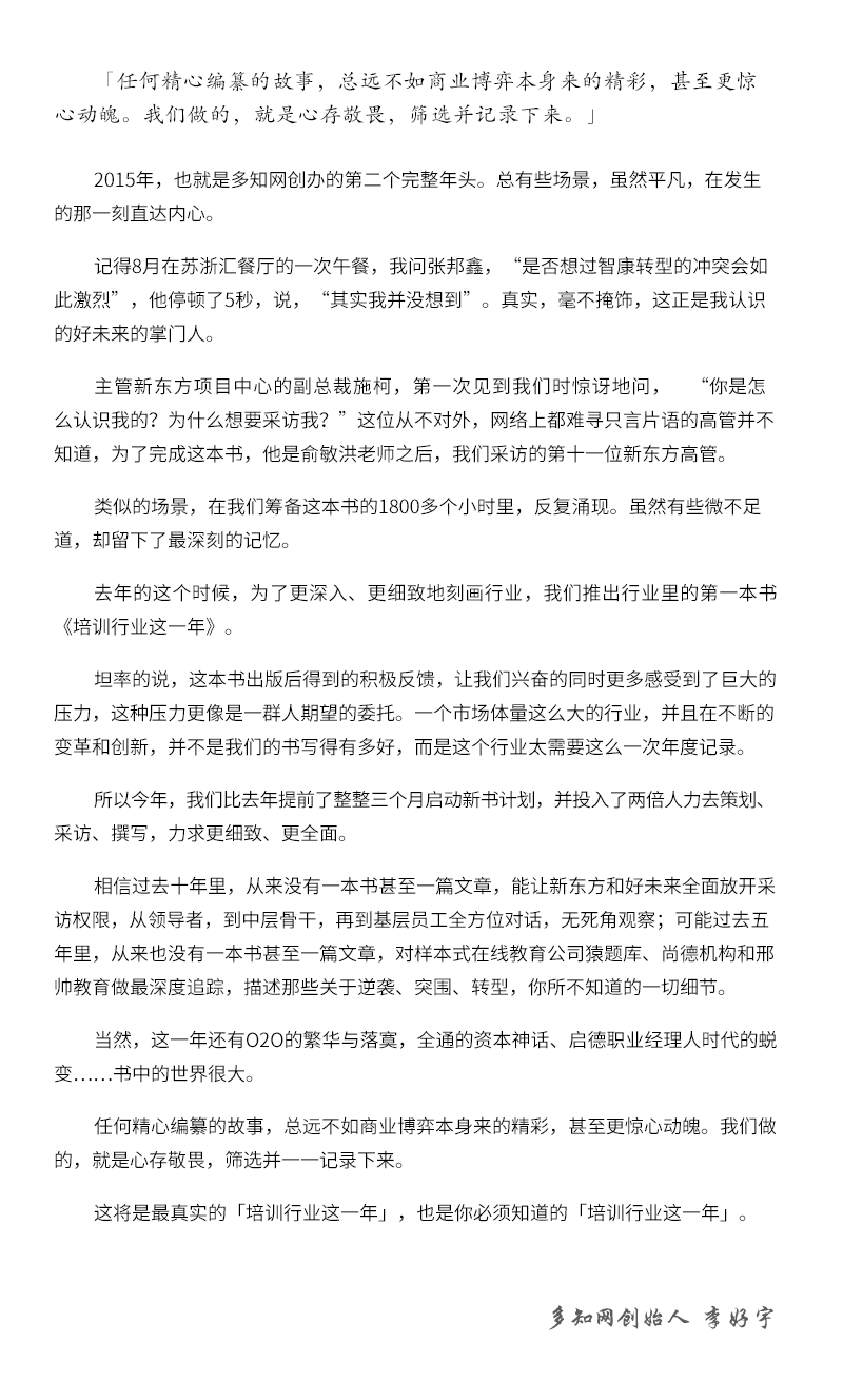 多知商學(xué)院創(chuàng)辦于2017年,面向教育行業(yè)創(chuàng)業(yè)者、從業(yè)者、投資人,課程體系涵蓋系統(tǒng)課、專題課、大講堂,旨在連接行業(yè)頭部,直擊深度思考,提升商業(yè)認(rèn)知,催生自我迭代。