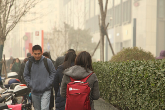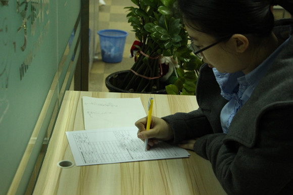 6點(diǎn)10分,珊珊填完表,還要趕回學(xué)院路附近,那里還有7點(diǎn)鐘的一對(duì)一課程在等著她。雖然這一天霧霾依舊很?chē)?yán)重,但是,懷孕月余的珊珊能做的防護(hù),也只是帶上口罩,繼續(xù)奔往下一個(gè)目的地。