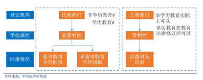 第二點,有很多投資人舉辦的民辦學(xué)校,雖然是非營利性的屬性,他們是登記在民政部門。但是實際上卻有一些盈利的行為,就是通過控制的子公司來收取服務(wù)費這樣的方式來收取辦學(xué)回報。