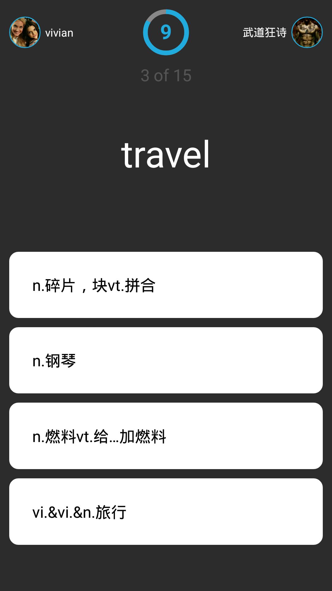 利用競(jìng)技場(chǎng)規(guī)則充分調(diào)動(dòng)用戶(hù)的情緒,這是我們提升背單詞體驗(yàn)的核心。在斗場(chǎng),從已掌握的單詞中抽15道題作答,你與對(duì)手全神貫注、各自作答,竭盡所能以最佳狀態(tài)完成比賽。在壓力條件下驗(yàn)證記憶成果,同時(shí)是基于更加明確的成就目標(biāo):KO對(duì)手,贏(yíng)得獎(jiǎng)勵(lì),提升排名。
