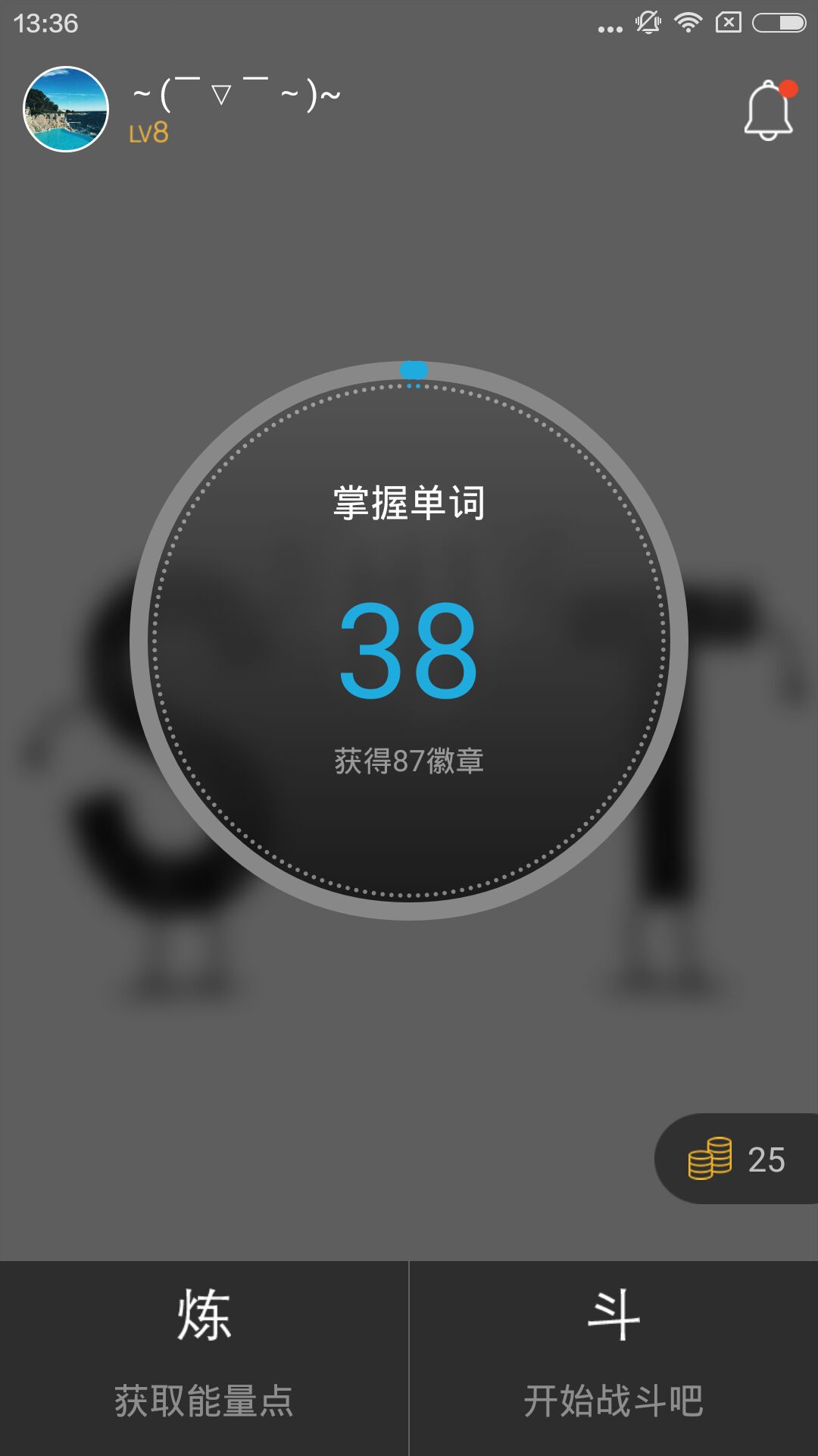 每一次正確作答都會(huì)積累能量,每一個(gè)單詞被多次答對(duì)之后都會(huì)獲得相應(yīng)難度的經(jīng)驗(yàn)值。獲得能量才可以參與雙人對(duì)戰(zhàn),獲得經(jīng)驗(yàn)值才可以提升等級(jí),享受更多福利。而隨著詞匯量慢慢增加,解鎖隱藏成就的機(jī)會(huì)也會(huì)逐漸增多。