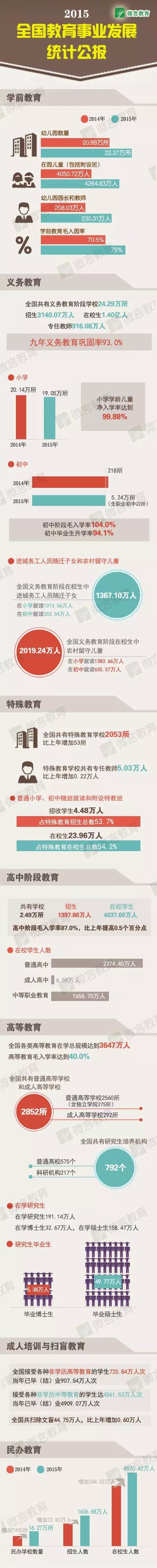 以下為《2015年全國教育事業(yè)發(fā)展統(tǒng)計(jì)公報(bào)》全部內(nèi)容: