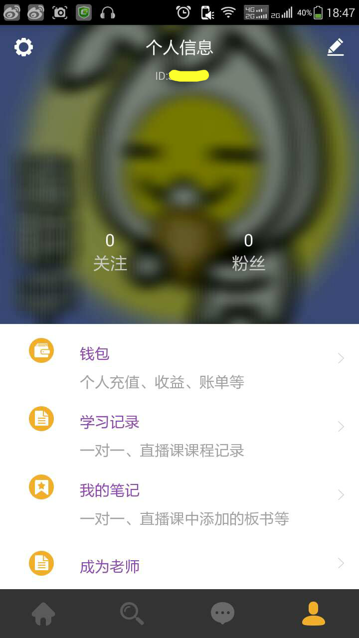 用戶個(gè)人界面包含錢包、學(xué)習(xí)記錄、筆記等內(nèi)容。