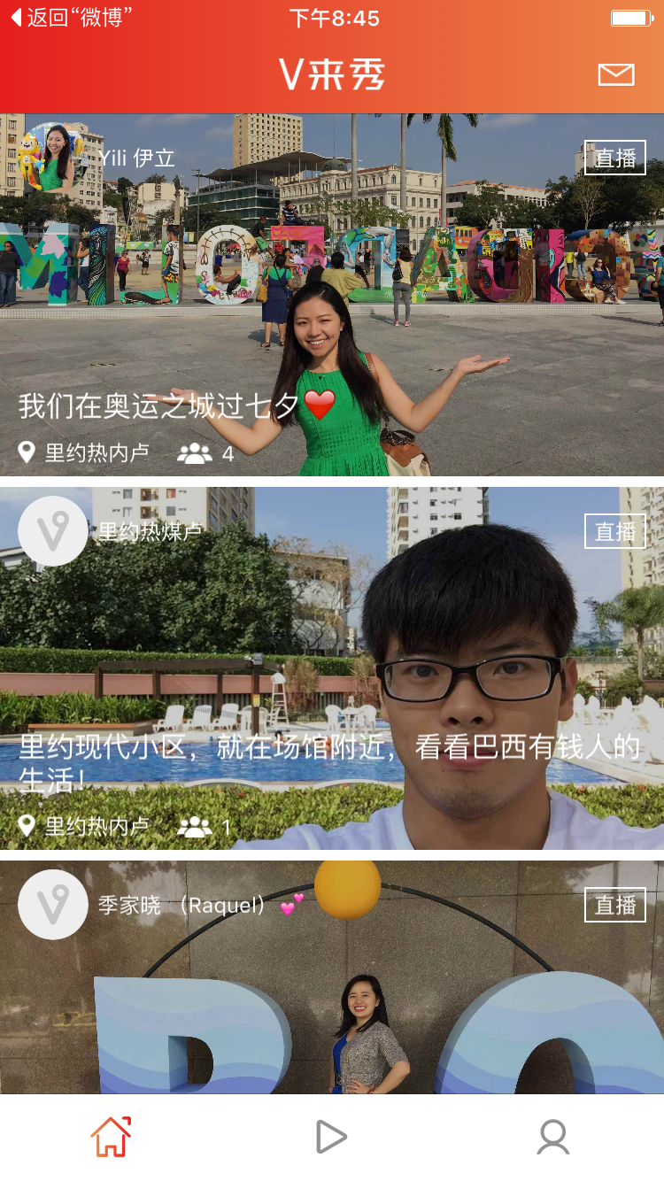 軟件首頁(yè)顯示正在進(jìn)行的直播。
