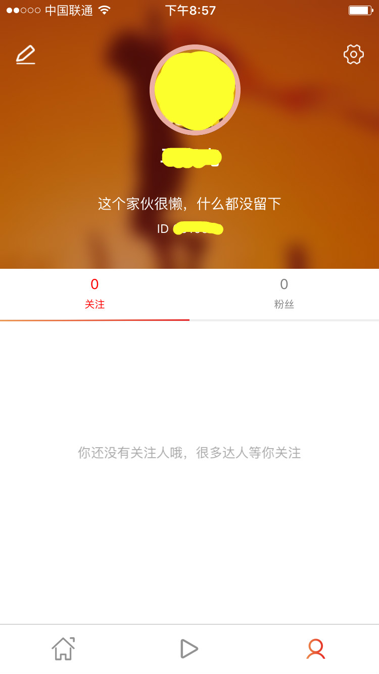 用戶個(gè)人主頁(yè)顯示關(guān)注人數(shù)和粉絲數(shù),界面類似于微博。