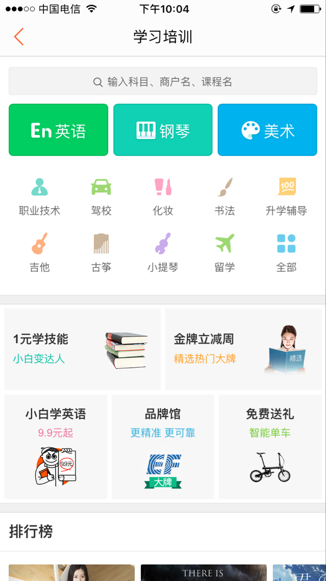 (美團(tuán)點(diǎn)評(píng)“學(xué)習(xí)培訓(xùn)”欄目界面)