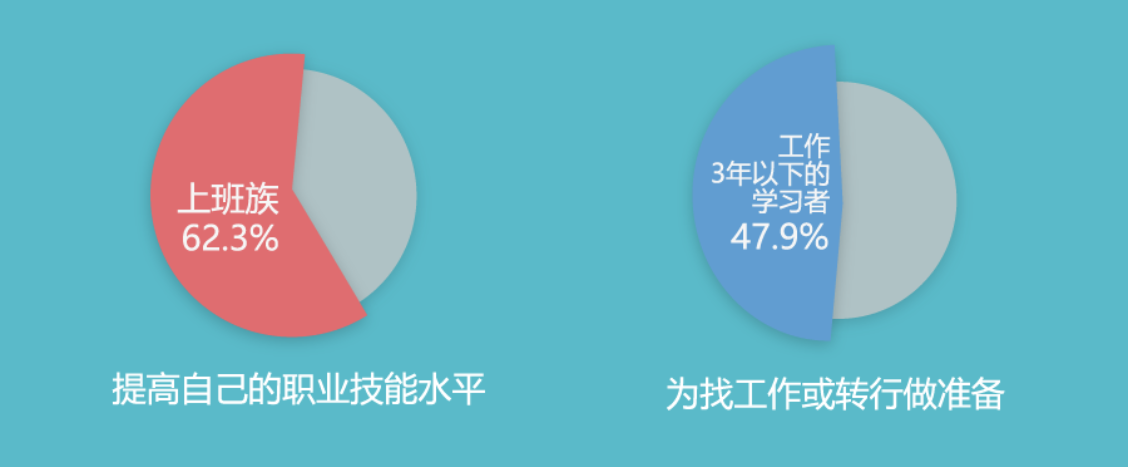 再聚焦學習者中的上班族,不難發(fā)現(xiàn),這部分人的學習目的更加明確:職業(yè)技能的提升。對比學生群體,滿足自己的業(yè)余愛好是他們選擇在線學習的主要因素。對于付費學習目的,上班族更在意購買的知識能否直接應用于工作中,學生群體則更看重話題本身是否吸引人。