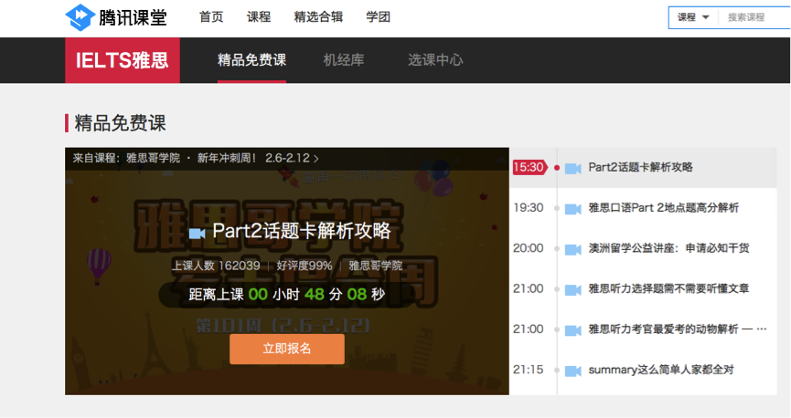圖為騰訊課堂雅思學(xué)院頁(yè)面