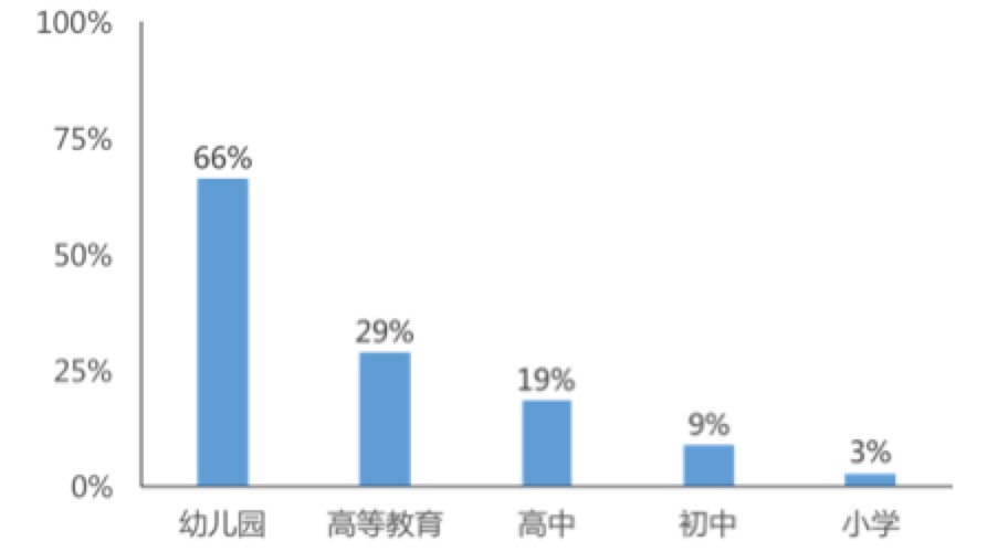 把在民辦教育機(jī)構(gòu)里面入讀的學(xué)生除以整體各個(gè)階段整體的學(xué)生數(shù)量。幼兒園沒(méi)有納入到國(guó)家的義務(wù)教育和公共服務(wù)領(lǐng)域,民辦率達(dá)到在66.36%。全球范圍看,民辦教育機(jī)構(gòu)比例都是超過(guò)公立機(jī)構(gòu)的,民辦教育機(jī)構(gòu)的比例都是在整個(gè)國(guó)家不同細(xì)分、不同階段的教育領(lǐng)域比例是最高的。
